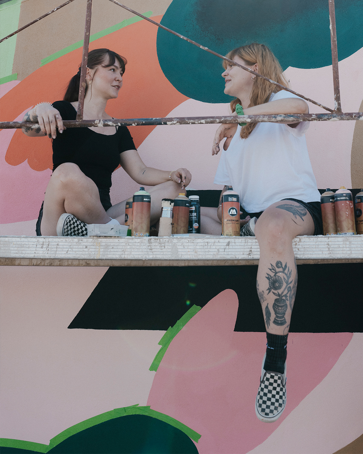 Während wir an der Wand gearbeitet haben, waren zahlreiche Personen auf der Baustelle zugange und haben den Prozess mitverfolgt – von rosa und braunen Farbflecken hin zu den fertigen Ebenen. Das Feedback von allen, umliegenden Bewohner*innen und Arbeiter*innen, war durchwegs sehr positiv. Das freut uns natürlich sehr.